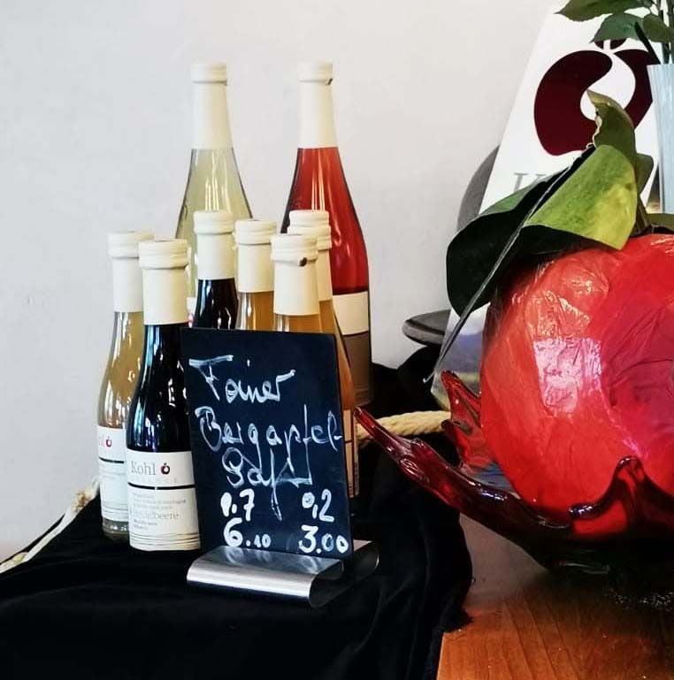 gute Essige, Öle und Salz, ausgesuchte Weine und Champagner, Berg-Apfelsaft, feine Fischkonserven, Kaffee- und Tee-Spezialitäten, Schokolade, Marmeladen, Sirup und vieles mehr!